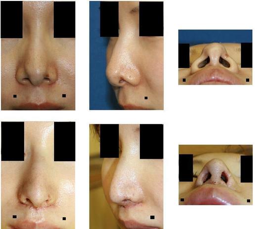 本日ご紹介の患者さんは鼻尖縮小術(クローズ法)、小鼻縮小術、鼻孔縁下降術、人中短縮術をお受けになられた患者さんです。